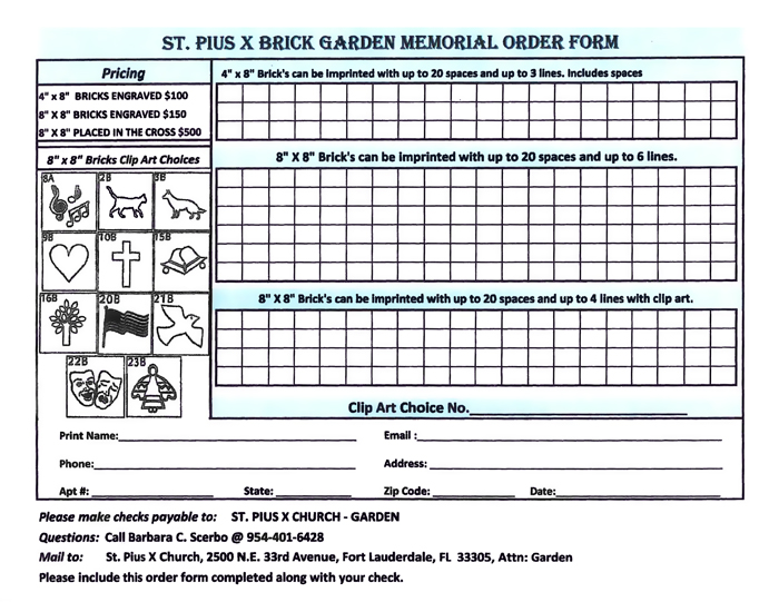 St. Pius X Chrch Brick Garden is a beautiful way to mark a special occasion or leave a lasting memory of a loved one.